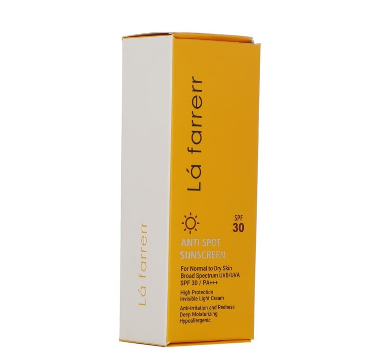 Colorless sunscreen and anti-spot cream Lafarer model SPF 30 suitable for oily skin volume 40 ml