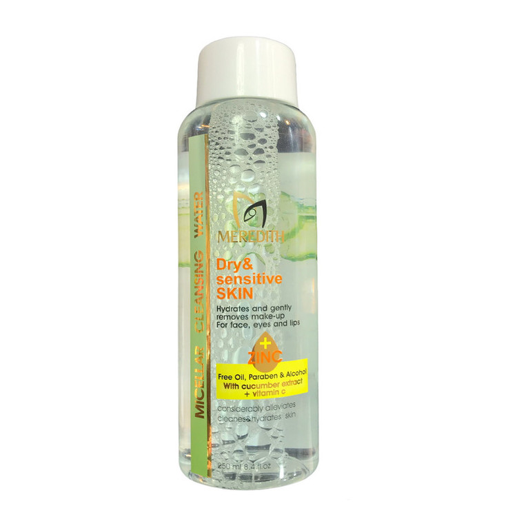 پاک کننده آرایش صورت،چشم و لب مردیت این محصول برای پاکسازی روزانه آرایش صورت و آلودگی های پوستی طراحی شده است که دور چشم و لب را نیز به وسیله آن میتوان پاک نمود. استفاده از این میسلار واتر نیاز به آبکشی ندارد پس از پاکسازی پوست صورت به وسیله این محصول نیازی به استفاده از تونر نیست. میسلار واتر مردیت مخصوص پوست خشک و حساس دارای PH فیزیولوژیک است و حساسیت، التهاب و خارش پوستی ایجاد نمی کند و با آبرسانی بالا خشکی و کشیدگی پوست را برطرف می سازد در نهایت پوستی شفاف و درخشان را به شما هدیه می دهد. ویژگی های این محصول: • مخصوص پوست های خشک و حساس • حاوی زینک Zinc • بدون روغن • بدون پارابن و الکل • حاوی ویتامین C